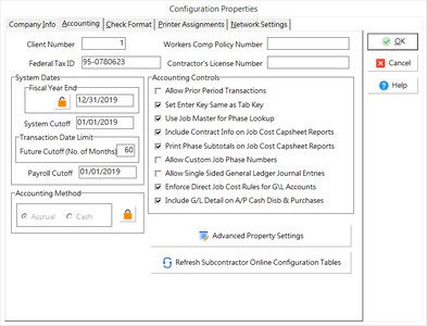 •If your fiscal year should change for tax reasons, please sure to carefully follow the documentation titled Change the Fiscal Year. This is a complex procedure and should be reviewed with AccuBuild's support staff before attempting to make the change.