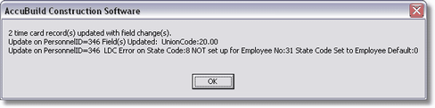 •State Code - This field is only necessary for companies that own the multi-state payroll feature. In most cases, companies that do business in multiple states will set the payroll state code on each job. In this case, do NOT include the state code field on the time card worksheet screen; let the system do the work for you. If you have not set up the payroll state codes on each job (again, this is only necessary if you work in multiple states), then you will need to include the state code field on the worksheet so that the user can identify the proper state; the transaction should reflect the state in which the job is located.