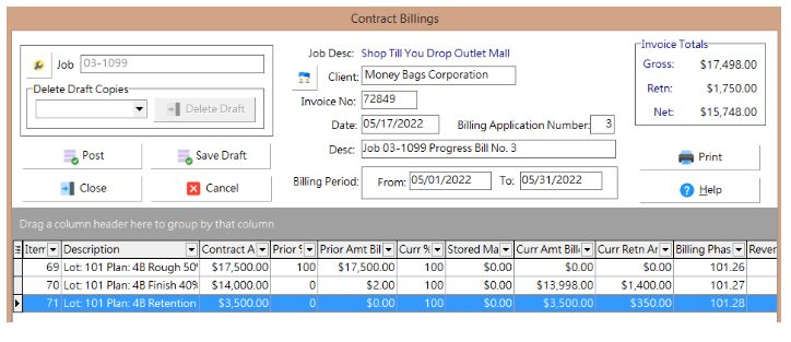 A new version of the Contact Billing Screen is now available which handles the process for saving and recalling draft (pencil) copies of the contract billings so that they do NOT have to be posted before getting final approval. The draft copies will be stored in the use's AccuBuild folder and can later be recalled for revisions and / or final posting through the system.