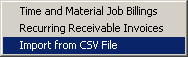 •A new option has been added to the AR Miscellaneous Invoice Screen for importing invoices from a CSV (Comma Separated Values) file using a pre-defined structure for the Invoice Master Record and supporting line item records.